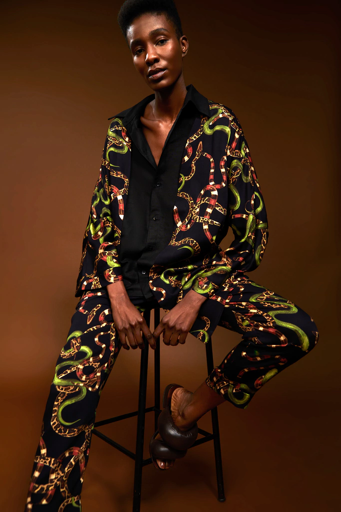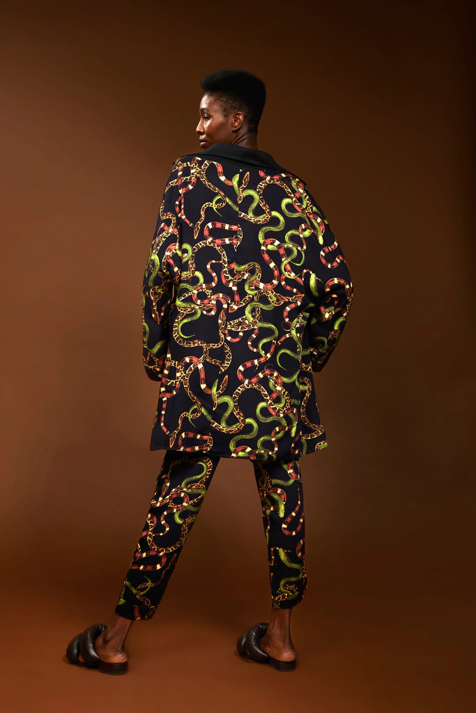 Kimono estampado com modelagem ampla, manga longa, 100% viscose com um leve brilho.